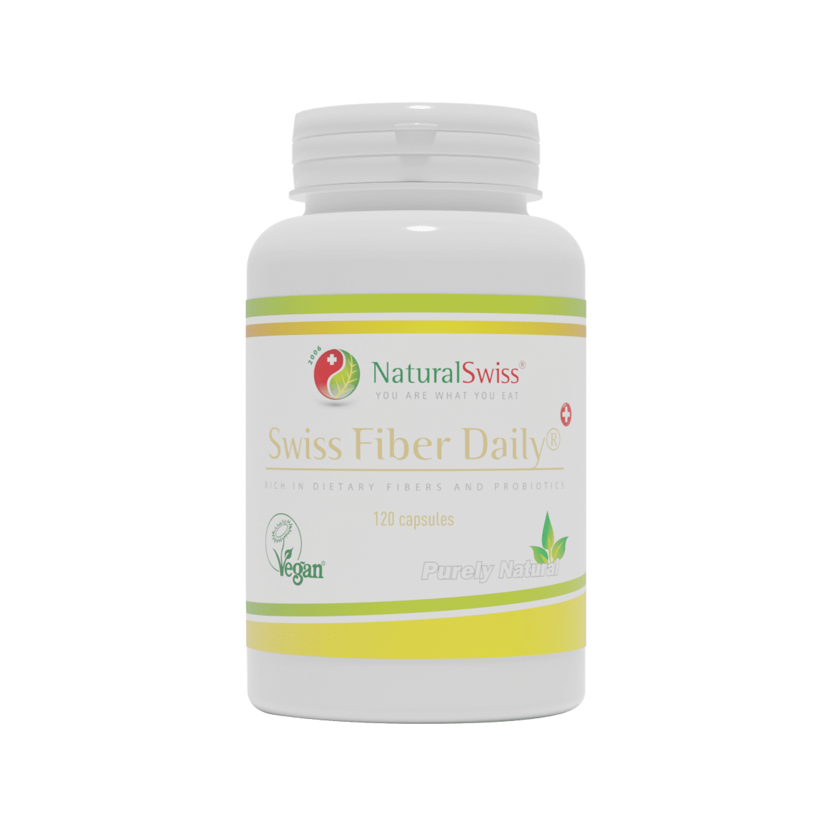 Swiss Fiber Daily je probiotický doplněk stravy, který díky mimořádně vysokému obsahu vlákniny přispívá k dostatečnému dennímu příjmu tohoto důležitého nutričního prvku. Každá kapsle obsahuje jednu miliardu probiotických bakterií, pečlivě vybrané rostlinné extrakty a enzymy podporující správné trávení. Díky přírodnímu složení je vhodný také pro osoby dodržující veganskou nebo vegetariánskou stravu.